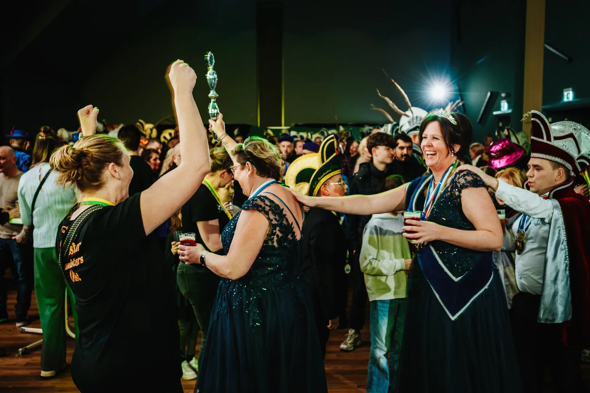 De zaal zat vol feeststemming tijdens de Prinsverkiezing 2025 in Olst. De Jeugdraad trapte de avond af met een polonaise, gevolgd door optredens van de Iesselstars en het aftreden van de jeugdhoogheden.