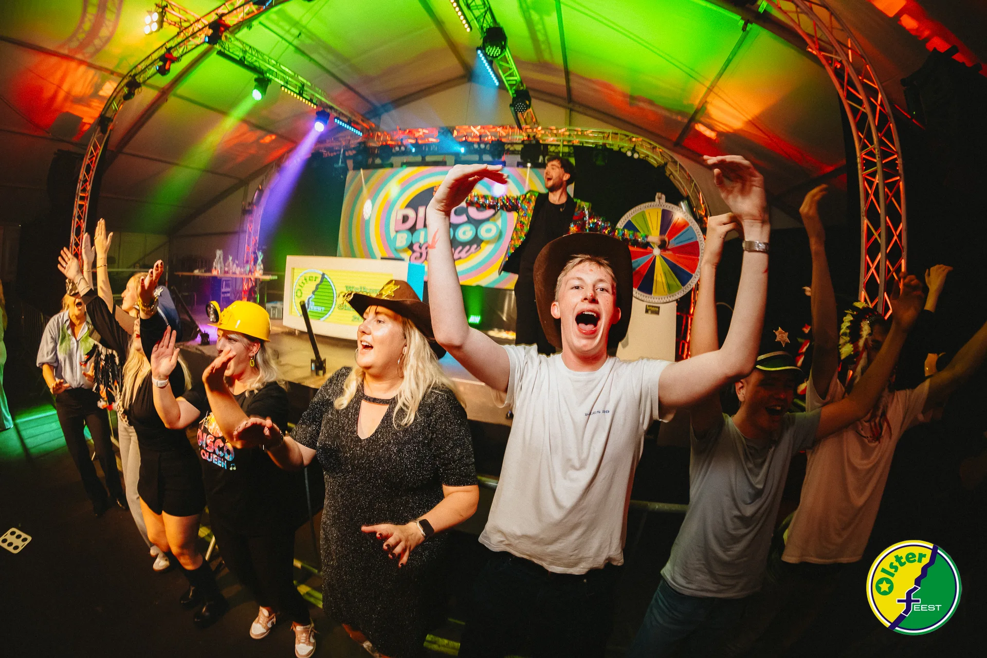 Vrijdagavond 19 september 2025 stond volledig in het teken van Discobingo tijdens Olsterfeest. De mannen van de Discobingoshow brachten een knotsgekke mix van muziek, bingo en dansvloerplezier. Bezoekers genoten van hilariteit, meezingers, bizarre prijzen en een Rad van Fortuin vol verrassingen. Glitteroutfits, vrolijke gezichten en een volle dansvloer maakten deze tweede editie opnieuw tot een groot succes.