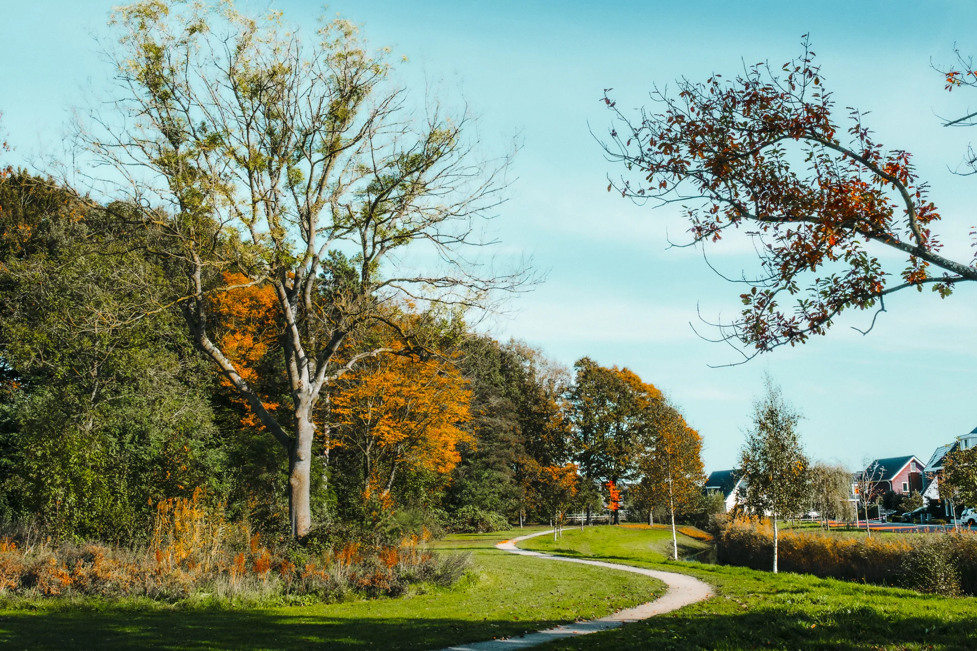 De bladeren glansden in goud en rood, terwijl de zon het landschap een laatste warme gloed gaf.